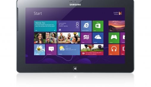 Naast de Samsung ATIV PC’s presenteert Samsung ook een nieuwe tablet met Windows 8: de Samsung ATIV Tab (10,1 inch scherm). De tablet weegt 570 gram en is daarmee lichter dan zijn voorganger, de Samsung Galaxy Tab 10.1, en is ook net iets lichter dan de iPad. De Samsung ATIV Tab 10,1 is 8,9 mm dik, en daarmee opvallend genoeg net iets dikke dan zijn voorganger.