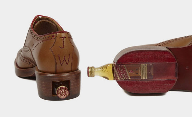 Er zijn heel veel verschillende manieren om stiekem een flesje alcohol ergens mee naar binnen te nemen. Maar de meeste manieren zetten je niet in een heel positief daglicht. Als je het niet op de juiste manier aanpakt lijk je namelijk al snel op een krent en dat wil je natuurlijk niet. Gelukkig zijn er ook meer ‘classy’ manieren om ergens een flesje mee naar binnen te smokkelen. Neem bijvoorbeeld deze broques (herenschoenen met van die gaatjes) van Oliver Sweeney en Johnnie Walker.