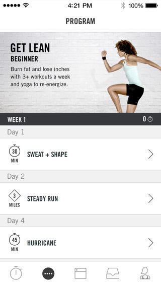 Nike+ Training Club is een makkelijke app waarmee je je telefoon verandert in een personal trainer. Je kunt kiezen uit verschillende niveaus en doelen. Zo kun je kiezen om leniger, strakker of sterker te worden. Wanneer je dit hebt ingesteld kiest de app je workouts uit. Denk hierbij aan een kwartiertje buikspieren of een cardio workout van een half uurtje. De programma’s bestaan uit verschillende oefeningen die je een bepaalde tijd moet volhouden. De app houdt de tijd bij, dus geen gezeur met stopwatches. Daarnaast kun je ook je eigen afspeellijst kiezen en wordt je via de app ook aangemoedigd om door te gaan.