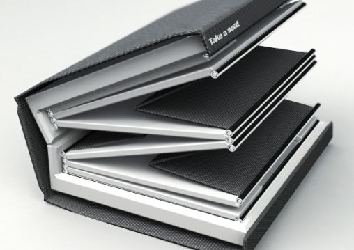 Take a seat is een boek -nee- niet om te lezen. Je klapt het open en kan er op zitten (lezen). Dit slimme boek is een ontwerp van Fransman Darris Hamroun.