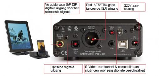 geavanceerde iD100 dockingstation. De iD100 is een flinke stap voorwaarts als het gaat om kwaliteitsweergave van muziekbestanden op iPad, iPhone en iPod. Cambridge zet hier mee een nieuwe trent volgens mij. De echte audiofiele kan nu pas echt gebruik maken van zijn geliefde Apple gadgets.
